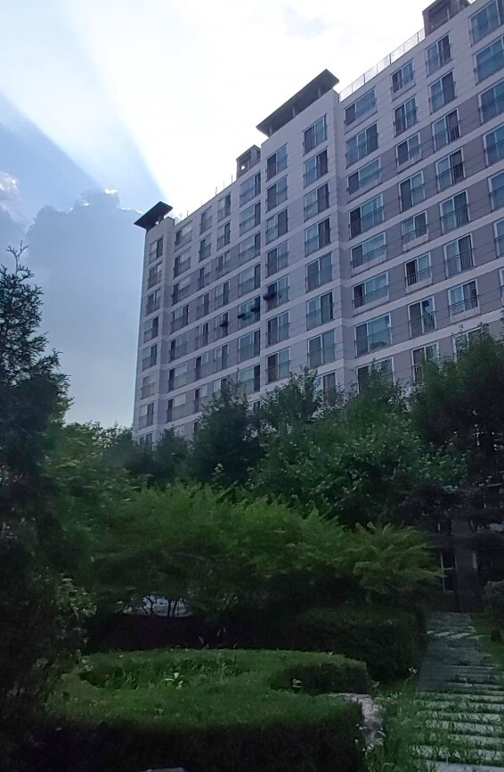 단지내 조경 잘 되어있고 1층 외부와 접한 부분은 필로티식으로 구성하여 2층부터 거주공간임