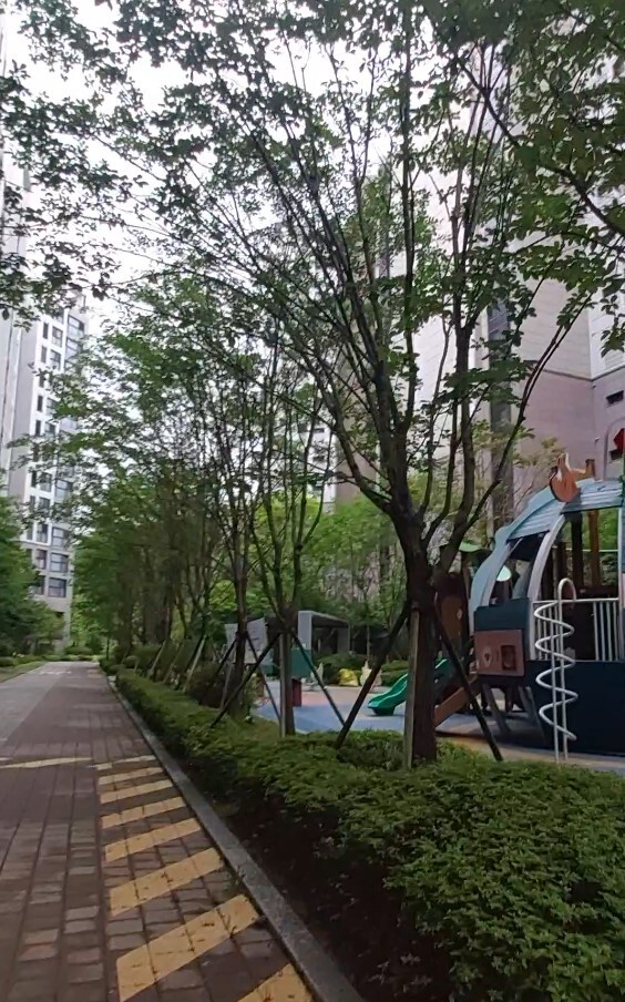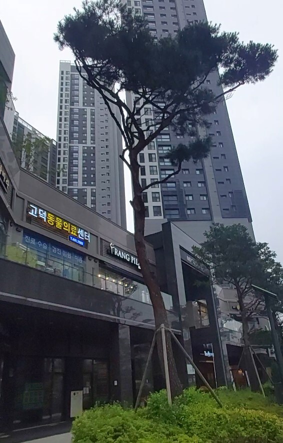 1층에 수목된 나무들이 건물에서 다소 떨어지게 수목되어있어 시야방해 없고 쾌적해보임